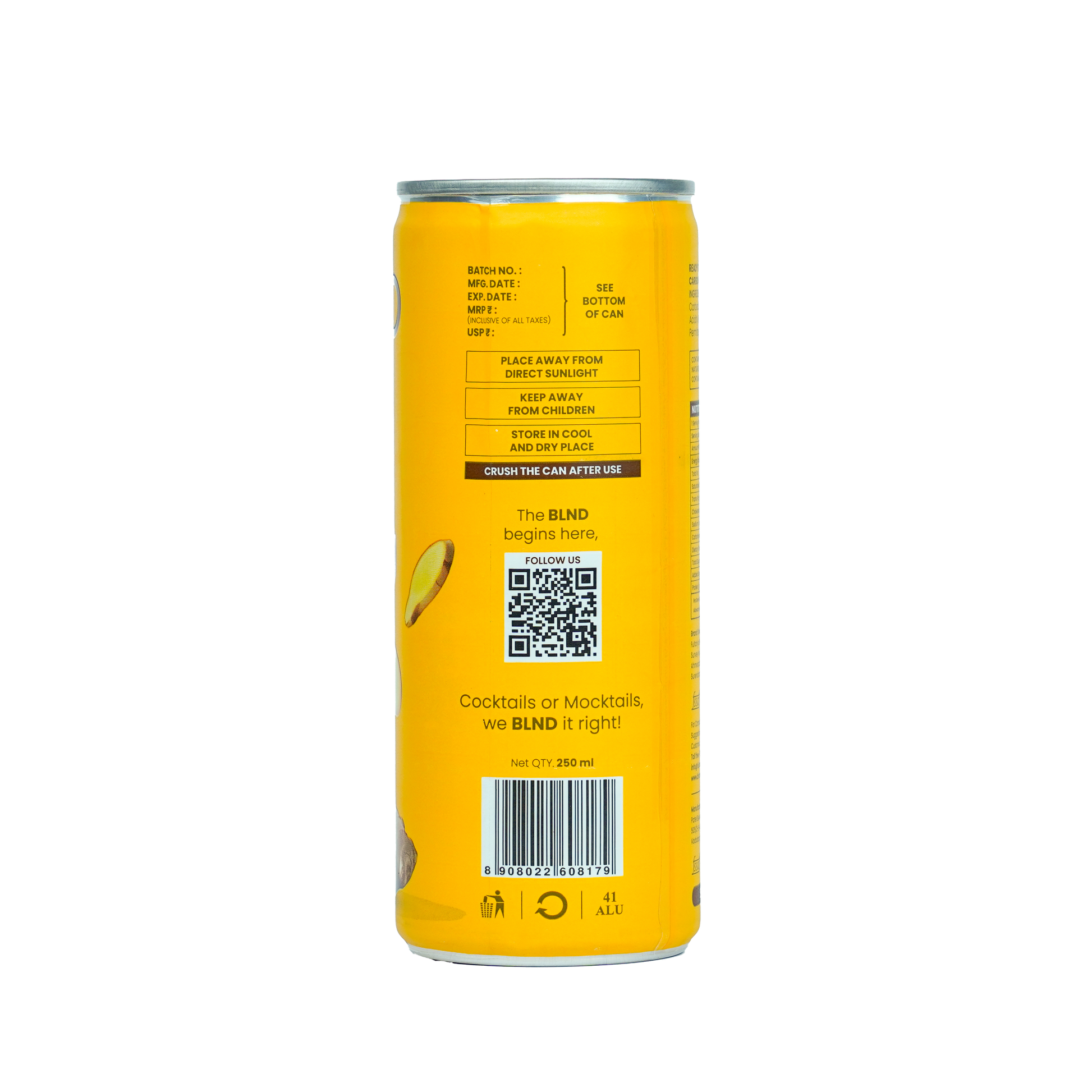 BLND is crafted for convenience – enjoy it straight from the can, ice-cold, or blend it with whiskey, rum, or other dark spirits. No prep, no hassle. Bold, Zesty Flavour: A punch of fiery ginger meets a clean citrus finish – sharp, strong, and refreshingly different. A modern twist on a timeless mixer. Versatile & Refreshing: Whether it’s cocktail hour or a midday refreshment, BLND delivers maximum flavour with zero compromise. Serve chilled. Made in India with Natural Flavouring: Proudly crafted using nature-identical flavoring substances for a consistent, premium taste in every sip.