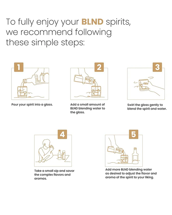 Elevate your Single Malt experience with BLND's premium blending water, crafted to perfection. A touch of sophistication for the discerning connoisseur.